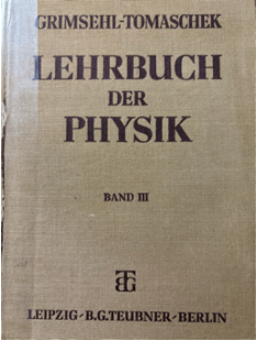 I have in my possession the most important German physics textbook published under the Nazi regime that reflects the ambivalence, if not actual rejection of Einstein’s Special and Generalized Theories of Relativity. It is Grimsehls Lehrbuch der Physik (Grimsehl’s Handbook of Physics) authored by Prof. Dr. R. Tomaschek. I inherited that book from Erich Lilienfeld, my father, who had acquired two of its volumes (II and III) in Madrid, the latter tome on April 9, 1942, shortly before our departure to Ecuador (see above photo of its cover). He had acquired those volumes because they were the best physics handbooks available in Madrid at that moment without any regard to their implied anti-Jewish slant. Here is the pertinent Wikipedia entry mention:
