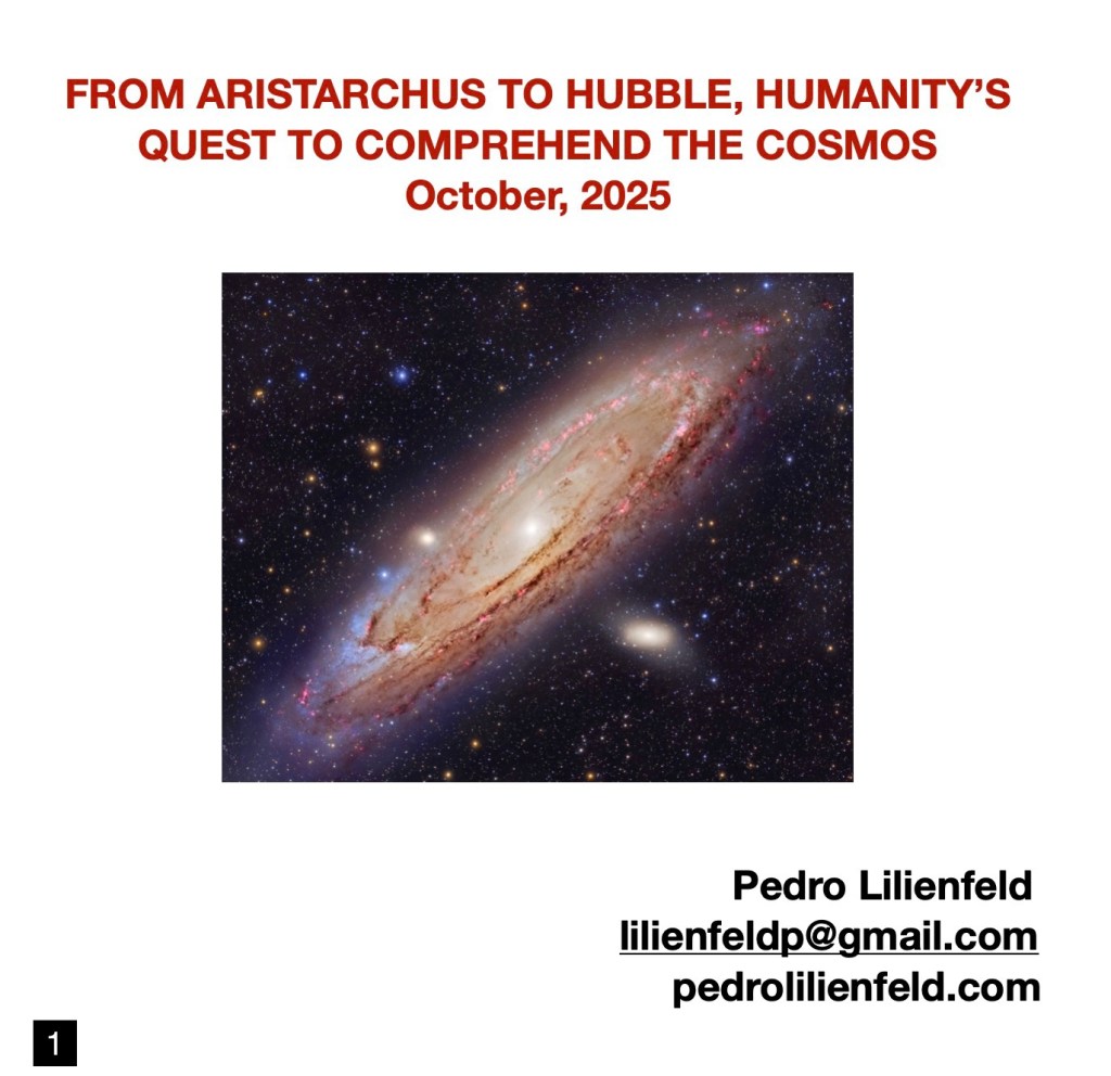 A parting thought. This endeavor at summarizing the progress of astronomy from about 300 BCE to the 1920s was bracketed by two remarkable figures: Aristarchus of Samos and Edwin Hubble. If we were to attempt to proceed forward to the present, we would no longer be able to identify a single individual scientist who merits a similar mention. The lofty as well as increasingly complex undertaking of comprehending the cosmos is no longer the province of individuals. It requires the convergence of a multitude of scientists and observatories scattered worldwide. It would be very improbable that a single astronomer, cosmologist or astrophysicist would now be responsible of a major breakthrough in humanity’s understanding of our universe. I can cite a current extreme example of the collectivization of the cosmological endeavor: a paper published in 2024 on the results of observations of gravitational wave events, with the arcane title: “GWTC-3: Compact Binary Coalescences Observed by LIGO and Virgo During the Second Part of the Third Observing Run”. The paper is 82 pages long (nothing earthshaking about that), the contributing authors, however, belong to 297 different research organizations in 22 countries. But here is the truly mind boggling statistic: the total number of authors of this paper is…. over 1,500!