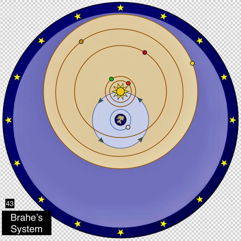 In the aftermath of the publication of Copernicus’s book, a gradual resistance to the acceptance of his heliocentric system arose. The dethroning of the Earth from its centrality was opposed by the established institutions, especially but not only by the Catholic Church. Towards the end of the 16th century a notable Danish astronomer, Tycho Brahe, expounded a new version of the solar system that attempted to solve the inconsistencies and complications of the ptolemaic system while preserving the centrality of the Earth. Brahe’s solution consisted of the planets, except the Earth, orbiting the Sun and the Sun orbiting the Earth. Tycho Brahe, however, made solid contributions to observational astronomy. He built the most advanced instruments and performed the most precise pre-telescopic positional measurements to date, providing invaluable data for the crucial subsequent advances by his student, Johannes Kepler which we will treat further on. We must acknowledge crucial contributions to Tycho Brahe’s observations by his sister Sophia Brahe leading to the discovery of supernova SN 1572. In his absence, she took on much of the astrological responsibilities with their clients. The preparation of horoscopes provided vital income to astronomers until the waning of the 17th century. We must mention at this point a tragic figure in the history of astronomy: Giordano Bruno, ordained a priest in 1572 at age 24.