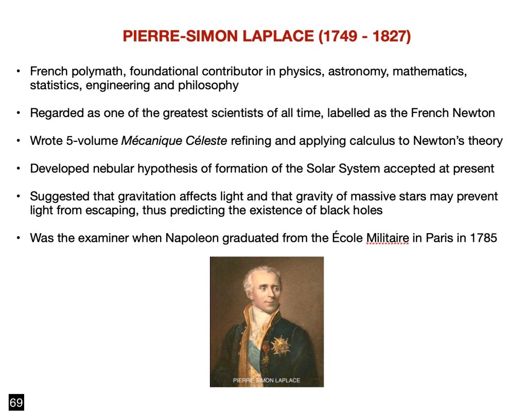 Next in our review of major players in the field of astronomy is a towering figure: Pierre-Simon Laplace. I’m going to take the liberty of citing the introduction to his Wikipedia entry: